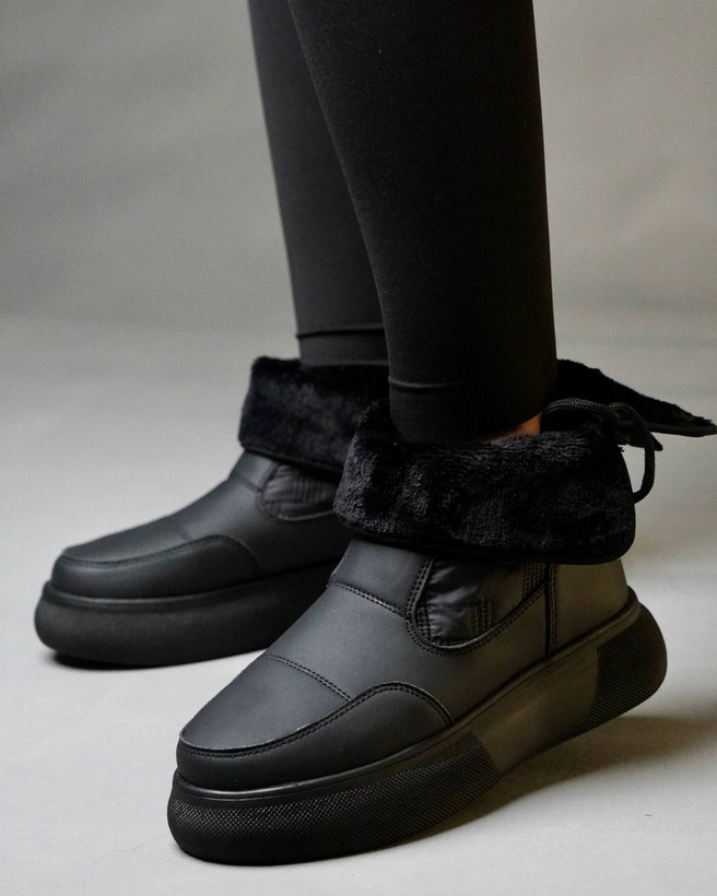 کفش زمستانی ساقدار زنانه مدل نیم بوت پشت بندی (برند یرفا) مشکی