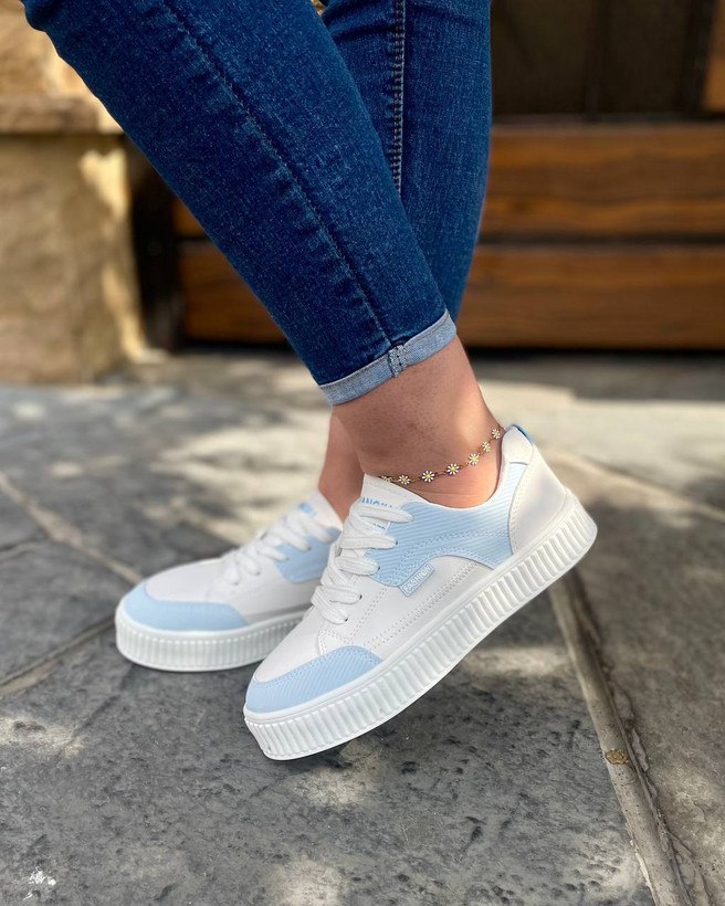 کتانی زنانه اسپرت مدل ونس فشیون زیگزالی سفید ابی