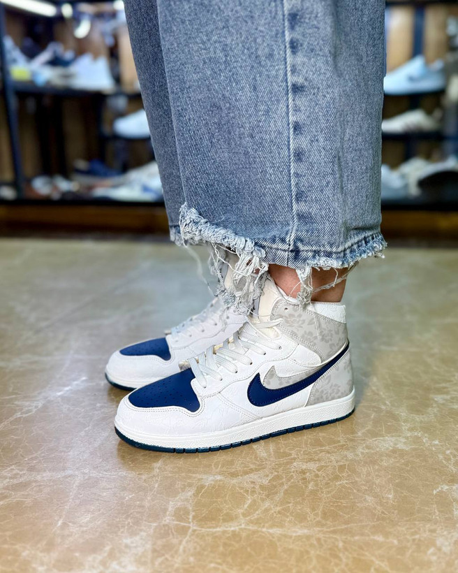 کتانی ساقدار زنانه مدل نایکی دبل (دو نایک)سفید طوسی سرمهای