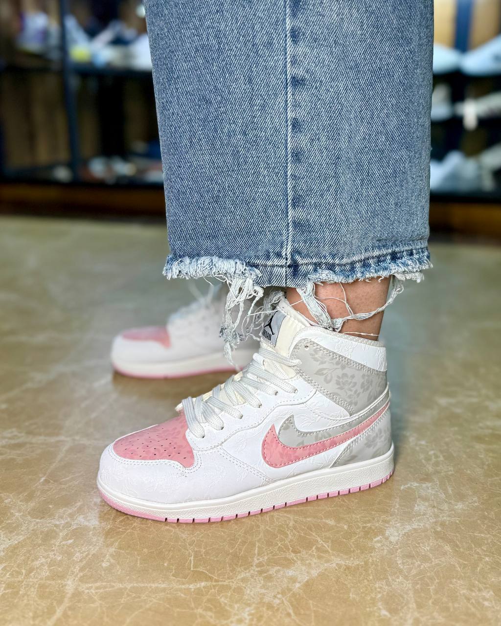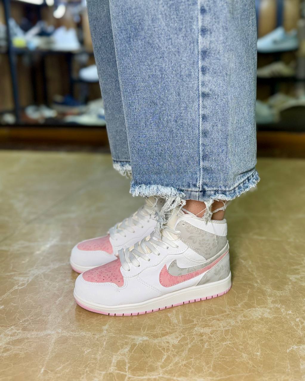 کتانی ساقدار زنانه مدل نایکی دبل (دو نایک)سفید طوسی صورتی